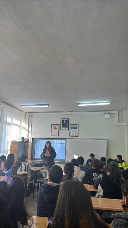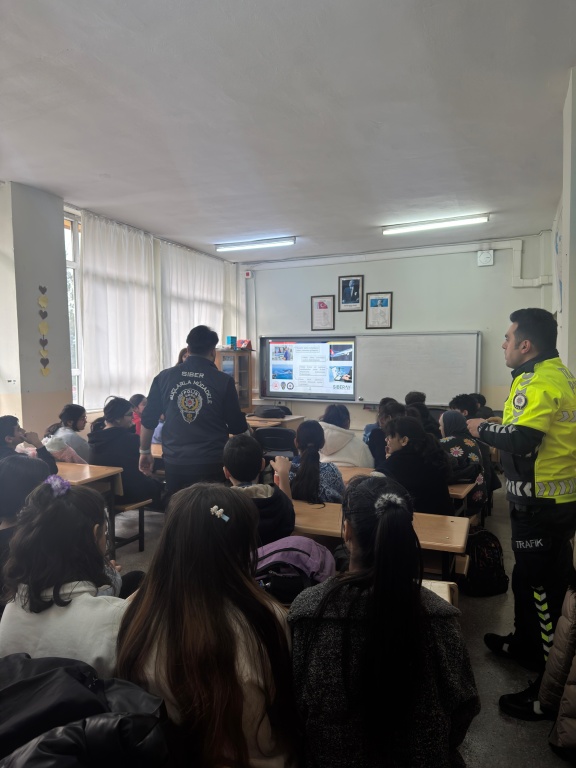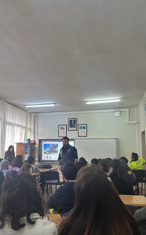 Emniyet görevlileri tarafından verilen eğitimde okul güvenliği hakkında öğrencilere bilgiler verildi. Seminer sayesinde okul güvenliği ile ilgili öğrencilerde farkındalık oluşması sağlandı.
